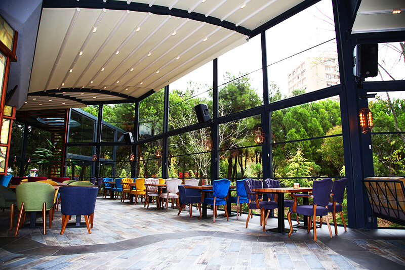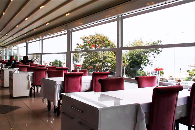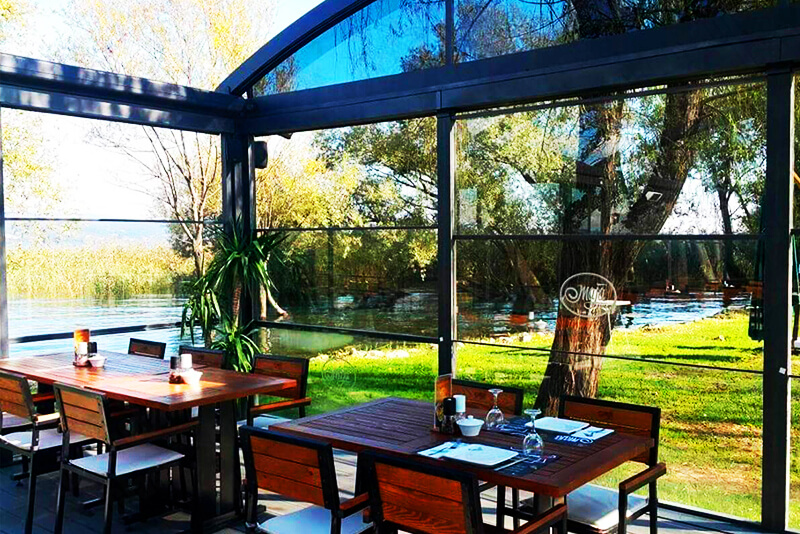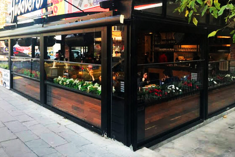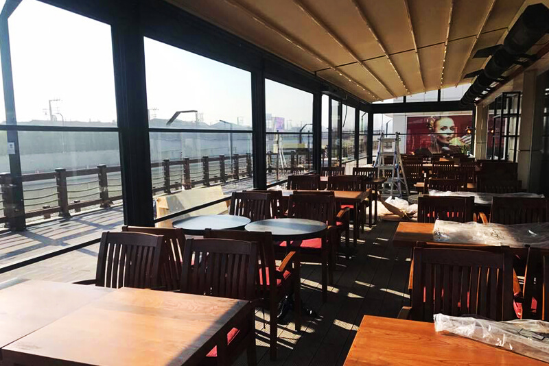 Навіть коли панелі зсунуті повністю вниз або на 2/3 висоти отвору, гості закладу вже захищені від продування вітром знизу і попадання пилу, який потрапляє з вулиці.